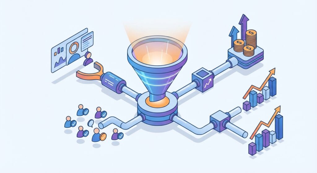 - Premiers leads organiques qualifiés (téléchargements livres blancs, contacts)